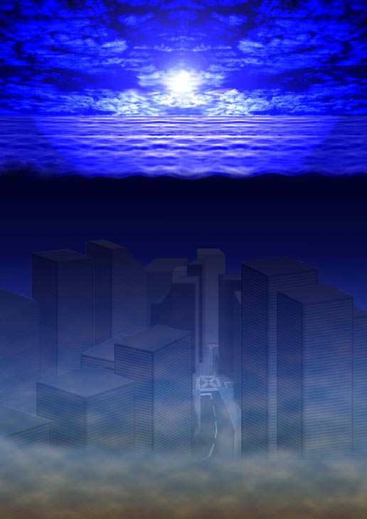 海に沈んだ都市は海面上昇による未来の姿を想像して描いてみたもの。昔から背景大好き。