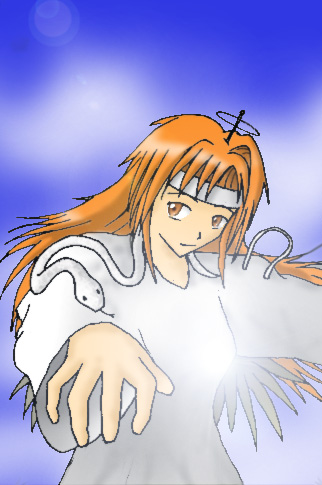 2001年の年賀状、二種類あるうちの一つ。前作のオリキャラ天使テレミンを描いてみる。