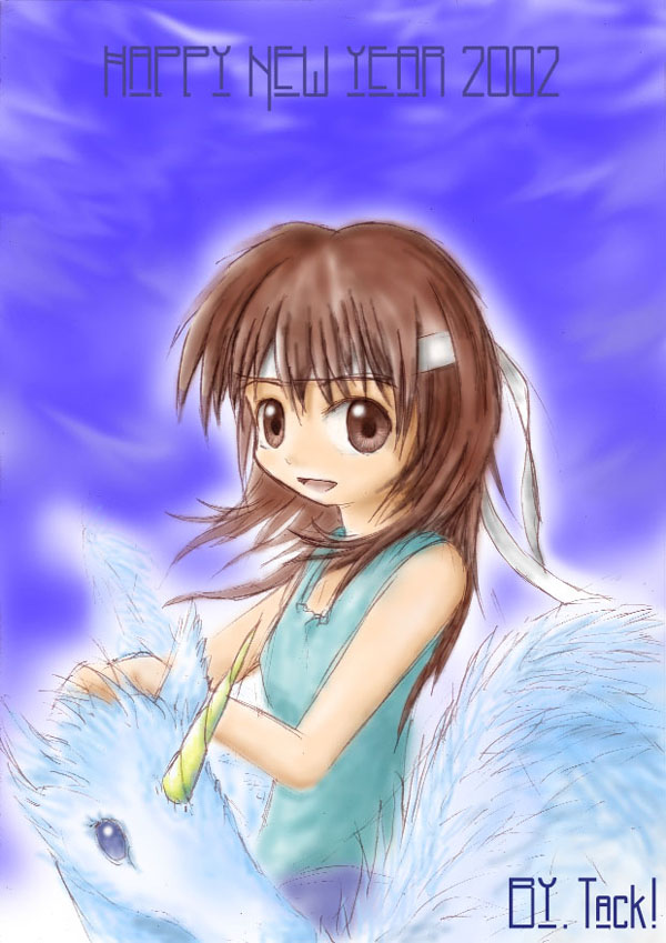 初の冬コミでいそがしすぎて、後れに後れてできた年賀状。一日でっちあげですので汚い。実は10種類の色違いバージョンがある。