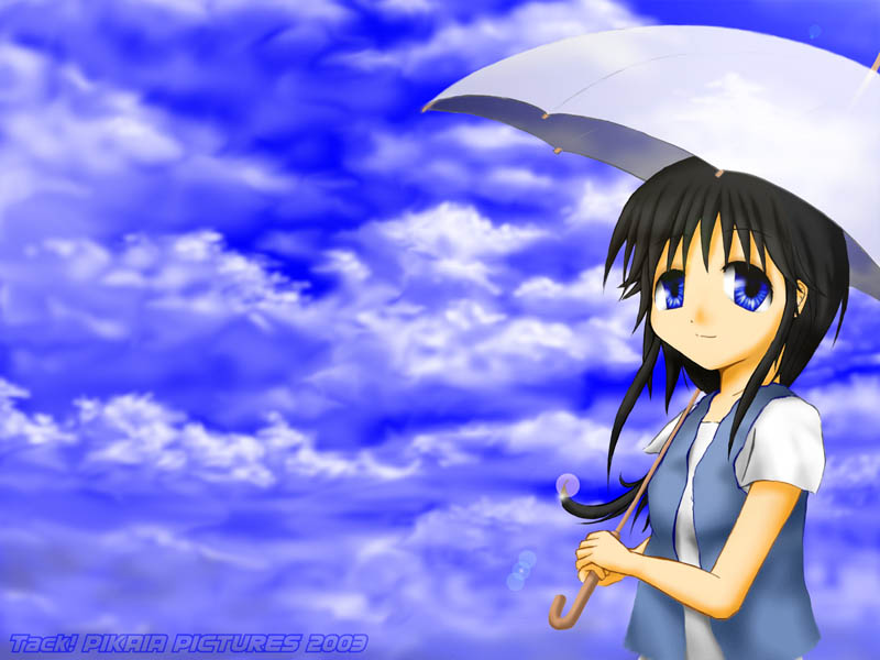 すでに九月は二百十日をすぎて描かれたものですが、残暑見舞い絵でした。誰の目にも日傘に見えない傘らしく、雨傘を間違えてさしてるって事にしましょう。(爆)