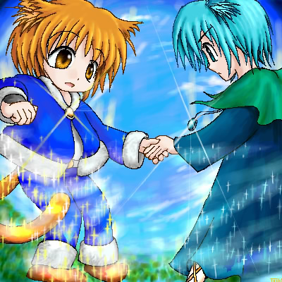 9.いくらもがいても上れっこない。あきらめたほうが楽だと考え、抵抗しないことにした。するといさの手がとどき、2人とも崖を落ちてしまいました。谷底につくかと思うと、すぐに2人の体がふわりと浮き、しだいに体が光に包まれ、体が消えていきました。「また何処かで会えることを願って・・・」そういさがつぶやくと、2人は谷底につくことなく光となって消えました。こうして神殿の森に残っていた最後の2人も外の世界に旅立って行ったのです。9LIVES 第一章 -終-